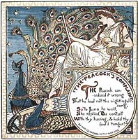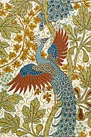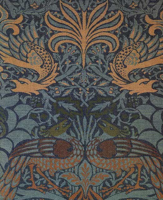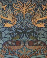 célból tanulmányozta a középkori kéziratokban levő mintákat, szőnyegeket, hímzéseket. A fenti páva minta forrását egy XII századi iszlám szőnyegben találta. William Moris eszméi és módszerei egész Európában elterjedtek. A mi építészeink, iparművészeink, mint Spiegel Frigyes, vagy a gödöllői művésztelep tagjai is ismerték és követendőnek találták.J