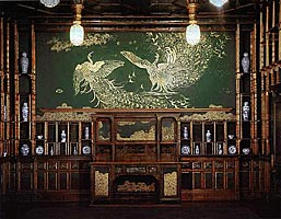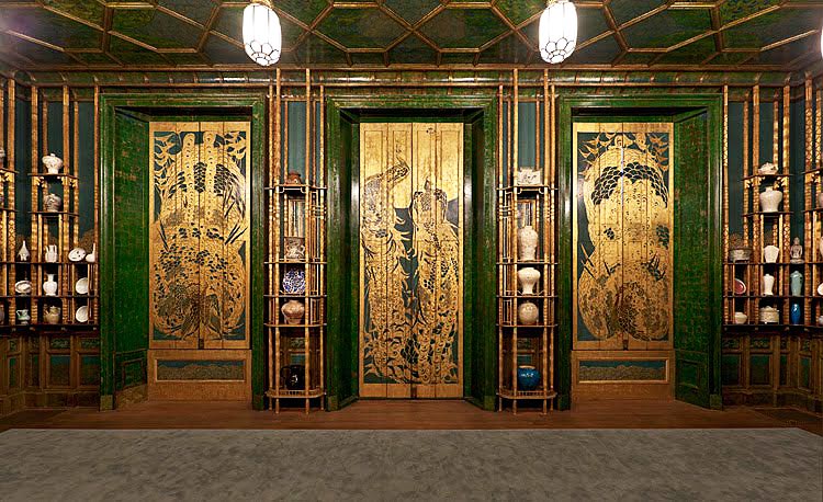 histler, elsők közöt foglalkozott keleti műtárgyak gyűjtésével, sőt maga is keletiesen élt, japán ágyban aludt, japán porcelánból, pálcikákkal evett. Frederick Leyland hajógyáros részére festette meg 1864-ben a "The Princess from the Land of Porcelain" című képét (Szabadon fordítva: Kina hercegnője) A képet egyszerűen a gyáros porcelánjai közt helyezték volna el, de Whistler nem kis arroganciával az egész termet átalakította, összhangba hozta saját festményeivel és létrehozott egy világszinten káprázatos és egyben formájában innovatív környezetet, a Páva Termet, a szépség büszke madarának otthonát. Célja, hogy a festmények és a gyüjtemény tárgyai egyetlen harmóniába, szinfóniába, elrendezésbe kerüljenek (Whistler sokszor élt zenei hasonlatokkal). A dolog sok vitára adott alkalmat, a szoba építésze egyébként nemsokára megőrült és tragikus körülmények közt halt meg...W