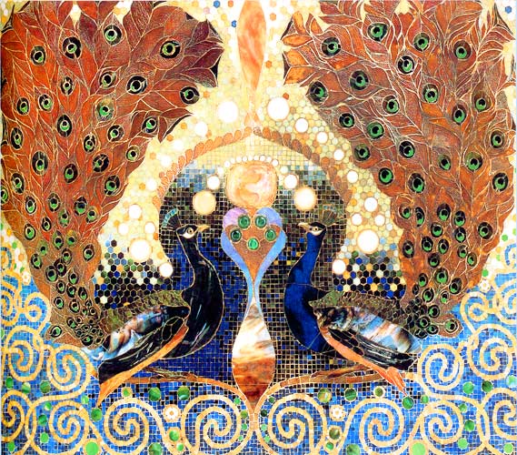 ouis Comfort Tiffany (1848. február 18. – 1933. január 17.) az Art Nouveau mozgalom úttörője, neves iparművésze az Egyesült Államokban. Az alábbi munkája a Páva Mozaik 1890-91-ben készült Henry Osborne Havemeyer háza diszítéseként, New Yorkban, méretei: 132,5 x 163,2 cm, anyaga üveg és gipsz.