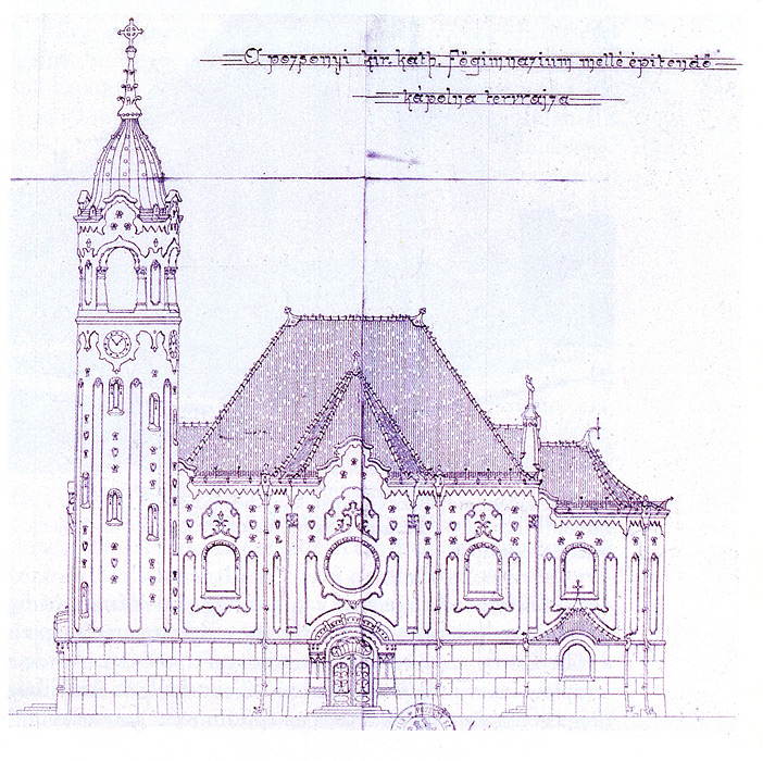 tt kell elmondanunk, hogy a pozsonyiak már három éve foglalkoztatták Lechnert. Az 1906 és 1908 közt épült a Pozsonyi Királyi Katholikus Főgimnázium terveit szintén ő készítette, a templom ehhez az iskolához kapcsolódott. A szülők kérésére az iskolaudvar megmaradt a diákok testmozgása céljára, a városi elöljáróság ezzel egyetértve a szomszédos telket ajánlotta fel azzal a kikötéssel, hogy a templom a környék lakosságát is szolgálja majd.L