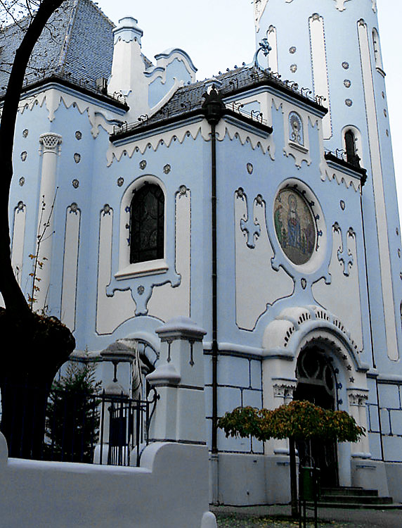 os, lehet hogy Lechner időnként depresszióba esik, anyagilag mélypontra sülyed (kávéházi tartozását később Vágó József fizette ki) de ekkor művészi tehetsége, akaratereje művészi makacssága feltámadt, a Kék Templommal igazi ékszerszekrényt alkotott, ahogy azt Komor Marcell nevezte írásában. Ma a templom Pozsony büszkesége, sőt Szlovákia szimbóluma a brüsszeli Mini-Európa parkba. (lásd a képsort, KATT a fenti képekre)A