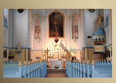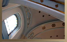templom látogatói a belsőbe belépve csodálatos élményről számolnak be, amit talán semmilyen fénykép nem tud visszaadni. A nyújtott térélmény, a két domináló szín összhangja, a díszítések egyszerű elrendezése, de egyben részletgazdagsága talán sejthető az alábbi képekből:A