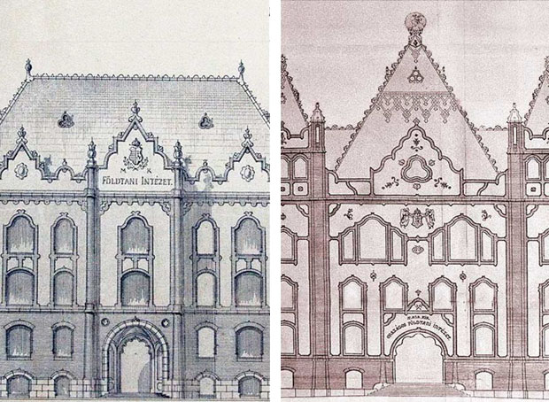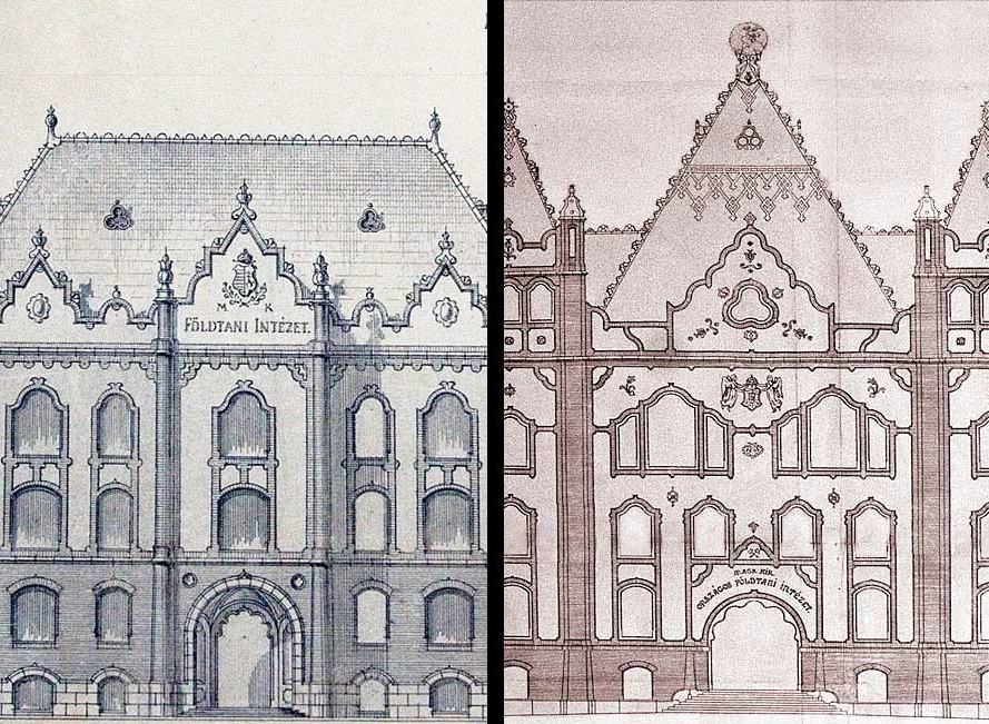 pályázati terv visszafogottsága és a modernebb, művészileg szabadabban kezelt kiviteli terv közt nagyobb különbséget látunk. A megbízás elnyerése után az alaprajzi egyszerűsítésből felszabaduló összegeket a homlokzat igényesebb díszítésére fordítja. Ugyanakkor tudjuk, Lechner önéletrajzi vázlatából, hogy az épp ekkor terjedő szecesszió formai szabadsága, neki is megerősítette egyéni művészi törekvéseit. Idézzük: "Az Európa-szerte megindult modern mozgalom, a 'szecesszió', mely a formaadásnak nagy, gyakran szélsőséges szabadságot adott, erősen segítségemre volt fölszabadulásomnál. A Földtani Intézet és a Postatakarékpénztár tanúi e kor vajúdásának"L