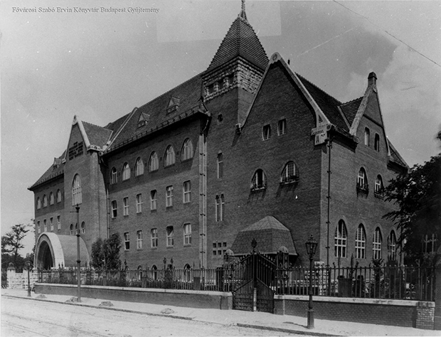 ajta Béla első jelentős középületét a Pesti Izraelita Hitközség megrendelésére tervezi. A Malonyay villa esetében már látott stílust folytatja, fejleszti tovább. A bejárati kapu és az ablakok boglyaíve a korban különösen magyarosnak tartott motívum volt, amit azért még megtalálunk néhány más, századfordulós épületnél is, pl. a skandináv építészetben, vagy Gaudi épületein. A kovácsoltvas kapun a népies mintákat későszecessziós stilizálásban láthatjuk, a kerítés betétein magyar verssorokat domborítottak Braille-írással.A