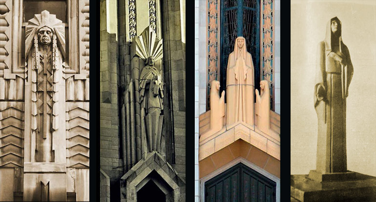 zeknél az art deco épületeknél a szobor „egyiptomi módra” eggyé válik az épülettel, pár helyen pillér (a szerkezet) részét képezi és egyben a legutolsó „épületdísz” is mielőtt az építészet megadja magát a modernizmus teljesen sima felületeinek.A Chicago Tribune Project - 1922