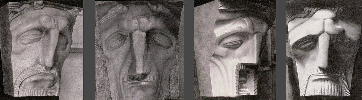 zek az építészetben népszerű maszkok kapcsolatba hozhatók az 1905-től az avantgárd festészetben és szobrászatban felhasznált afrikai harcos illetve totem maszkokkal is. Ezekeben a képsorokban a példák úgy is felfoghatók, mint azok geometrikusan végletekig stilizált formái. A német területen ezek a germán harcosok, hősők jelképes arcai lettek, a torinói magyar pavilonban nemzeti ősök, stb.K