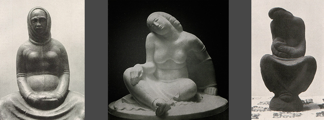 második csoportban (lenti képek) a realista beállítottság háttérbe szorul a dekoratív és a monumentális hatás kedvéért. Puha és kecses vonalak uralkodnak, az építkező jellegű forma pedig keménységet, ünnepélyességet kölcsönöz ezeknek a műveknek. A fantasztikum ezekben a művekben Otto Rieth épületterveinek hatását idézi.A