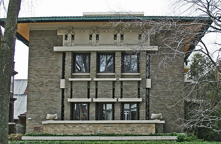 rank Lloyd Wright Frederick C. Bogk House épülete esetében (Milwaukee, Wisconsin, 1916-1917) a dekoráció terve még a szecesszió színességével és részletezettségével készül, formáiban a bécsi szecesszió hatására, de a kivitel során a kubista-konstruktivista szobrászathoz közelebb álló egyszerűbb változat született meg. Az alakok sorozatát mint látható, Wright egy modern homlokzaton, az ablakok felett klasszikus frízként helyezi el. (Katt a képsorozathoz - 5 kép)W