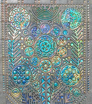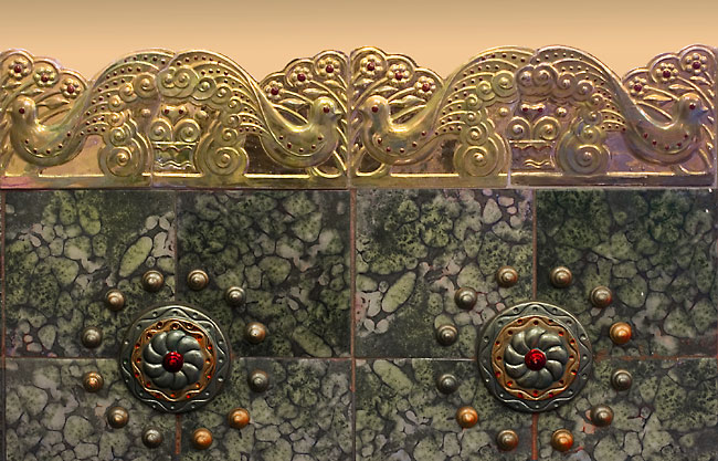 („életfa-madarakkal” a középpontban) csigavonalakba kanyarodó díszítményeikkel teremtenek egyedien