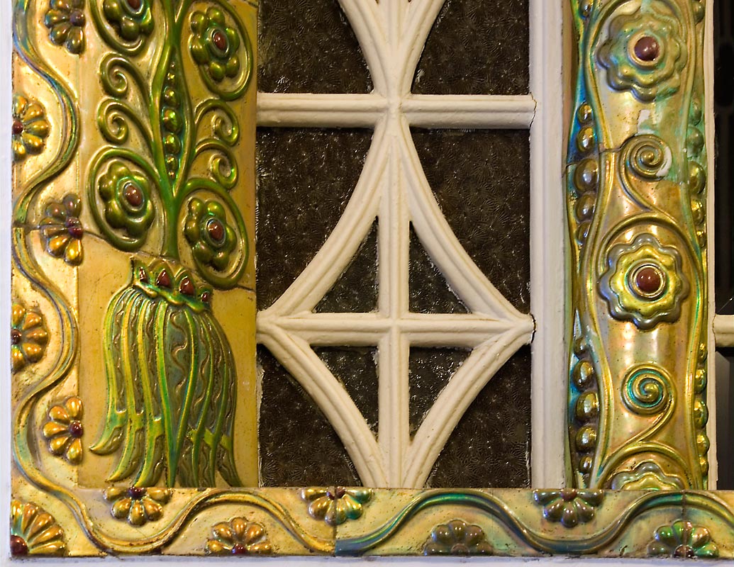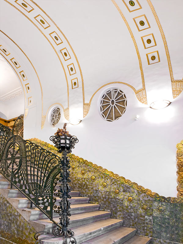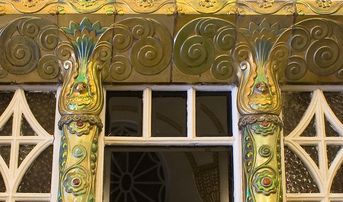 homlokzatdíszeket ritkán találunk a korabeli Európa szecessziós épületein. Belsőkben,