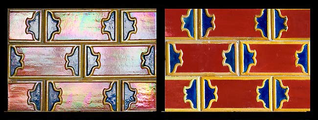 az aranyló fényű zöldes eozin-máz a kevésbé kopásálló, hiszen csak a máz felületén jelentkezik
