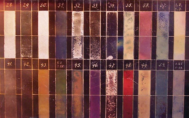 eljárás gyártási titkait. Makacs kísérletezéseik nyomán a számtalan árnyalatban felcsillanó