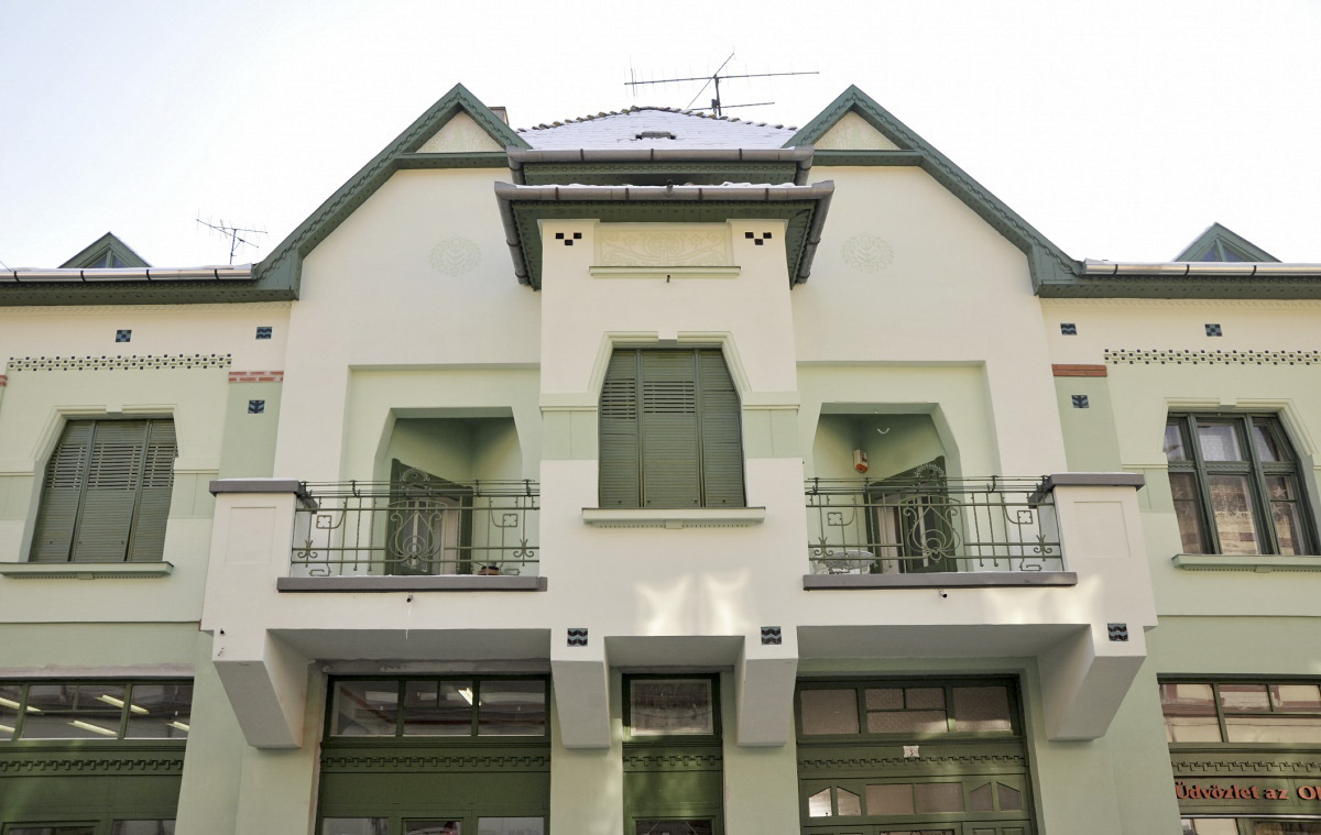 Modern emeletes lakó- és bérház szecessziós stílusban. Alsó szinten üzlethelyiségeket, felső szinten lakásokat alakítottak ki.