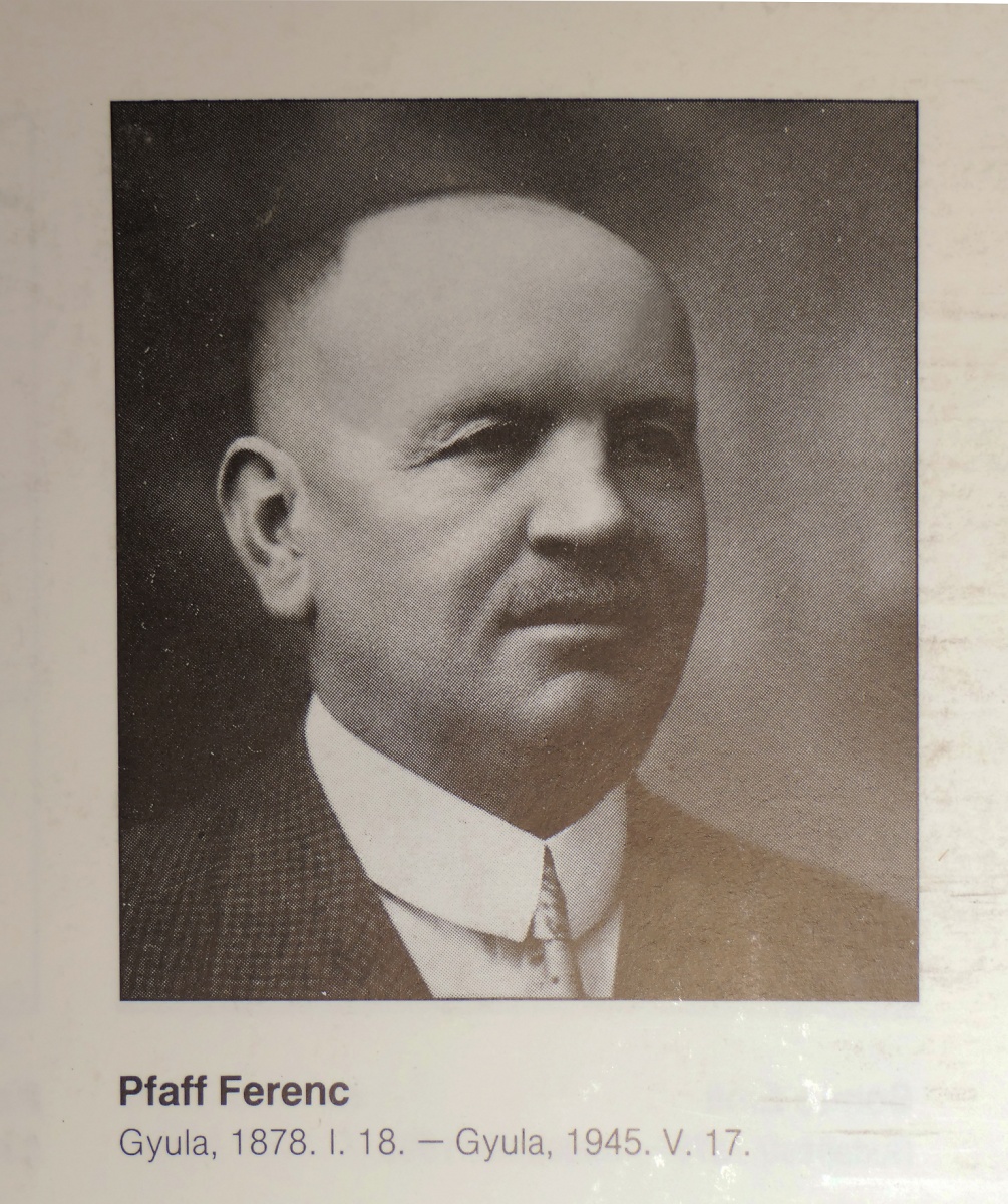 (Részletek, Somogyi Botond: "Pfaff Ferenc (Gyula, 1878. 01. 18. – Gyula 1945. 05. 17.) építőmester életrajza és munkássága" tanulmányból)