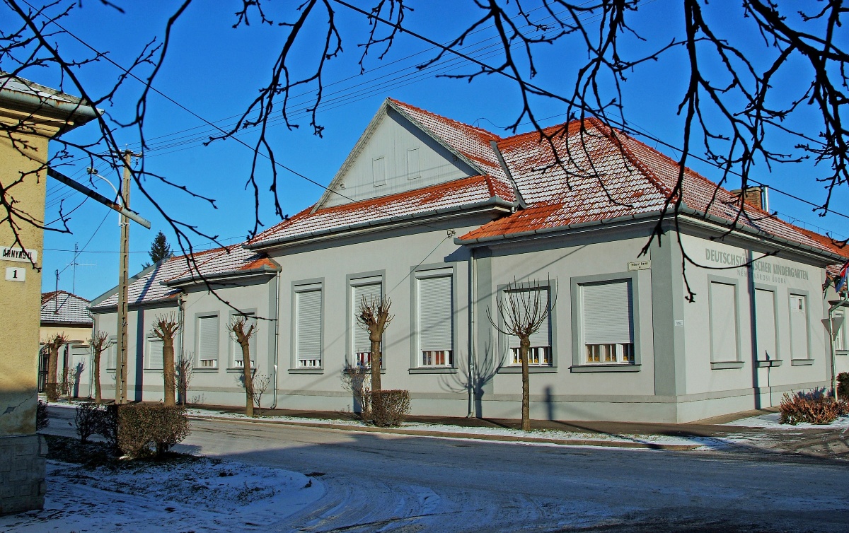 kétszintes kivitelben elkészült épület földszintjén elemi, az emeletén pedig polgári iskola volt.