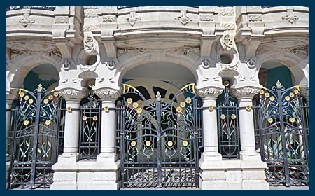 extraordinary art nouveau detail is evident in the stone façade as well as