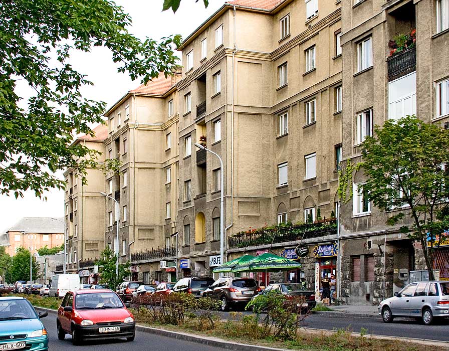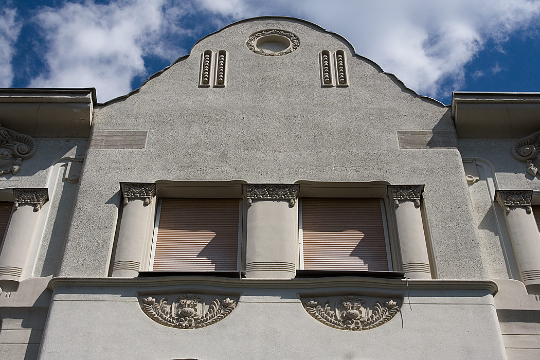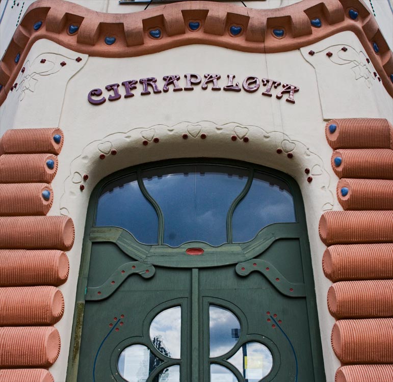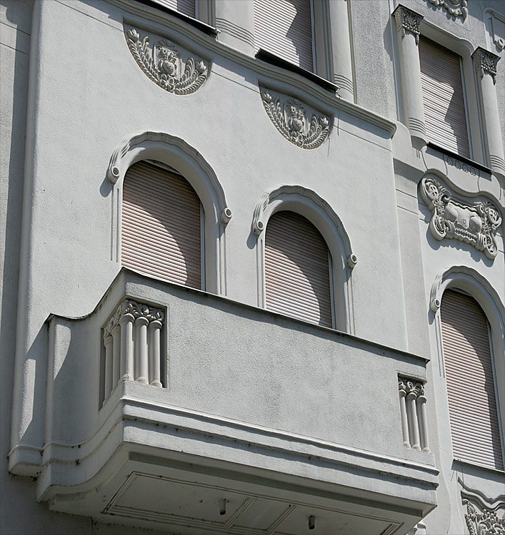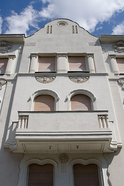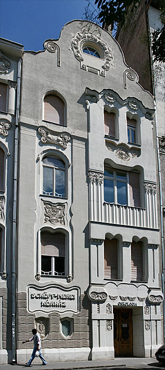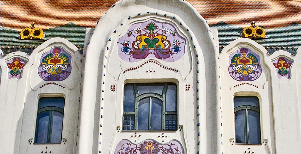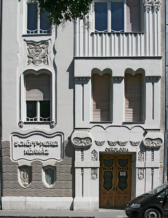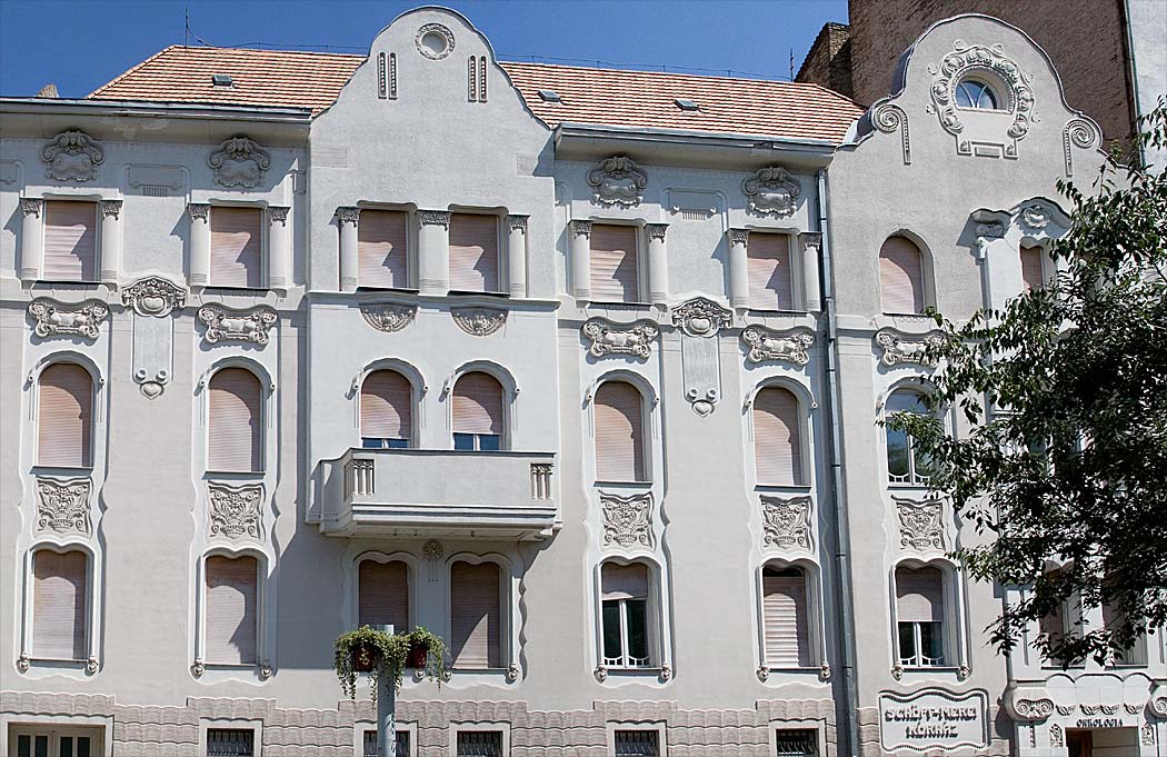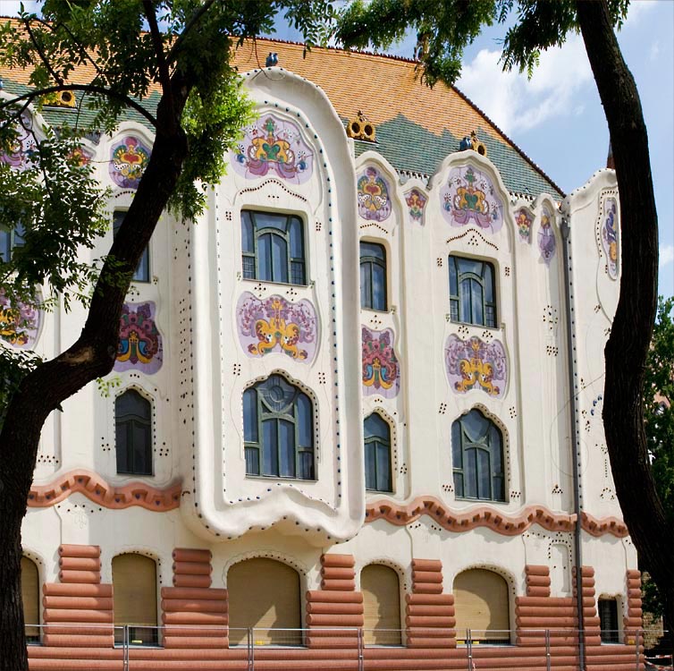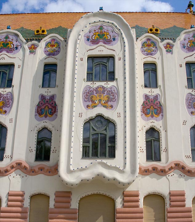 a nem is annyira cifra mint a Cifrapalota Kecskeméten (ami többeknek túl cifra) ez az épület - ami egyébként szépen fel van újítva - ugyancsak ötletes díszítést, mozgalmas falsíkokat mutat. Való, hogy ez nem színes, néhány év ugyanis eltelt a Cifrapalota építése óta, a szecesszió itt már mérsékeltebb.E