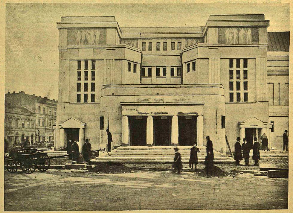 Népopera homlokzata imponáló, tiszteletet parancsoló: egyiptomi hatású ó-görög építőművészet képe, csakhogy a célszerűség-, illetőleg szükség-parancsolta felső ablakok, meg közelről nézve a színes üvegek elárulják, hogy az újkor alkotta a szokatlan nagy pogány templomot. Nagy felületek, csupa egyenes vonal, csupa felséges egyszerűség." (Vasárnapi Ujság, 1911 dec 3)