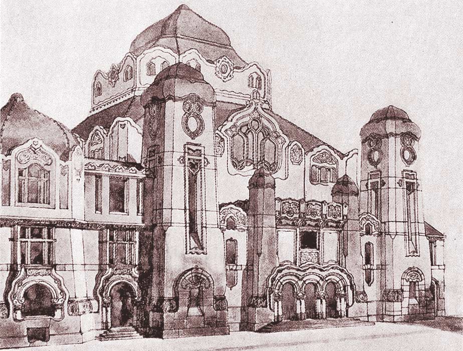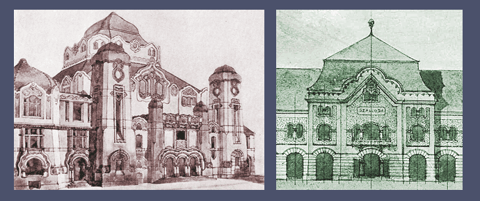alábbi zsinagóga terv mintha egyesítené a fentebbi vázlatokban látott magyaros építészeti stílust, ahogy Lechner folytatójaként Márkus Géza azt tovább vitte, és az emlékművek vázlatainál látható monumentalitást. Ez is azt támasztja alá, hogy az zsinagóga tervének megalkotásában Márkus Gézának volt meghatározó szerepe.A